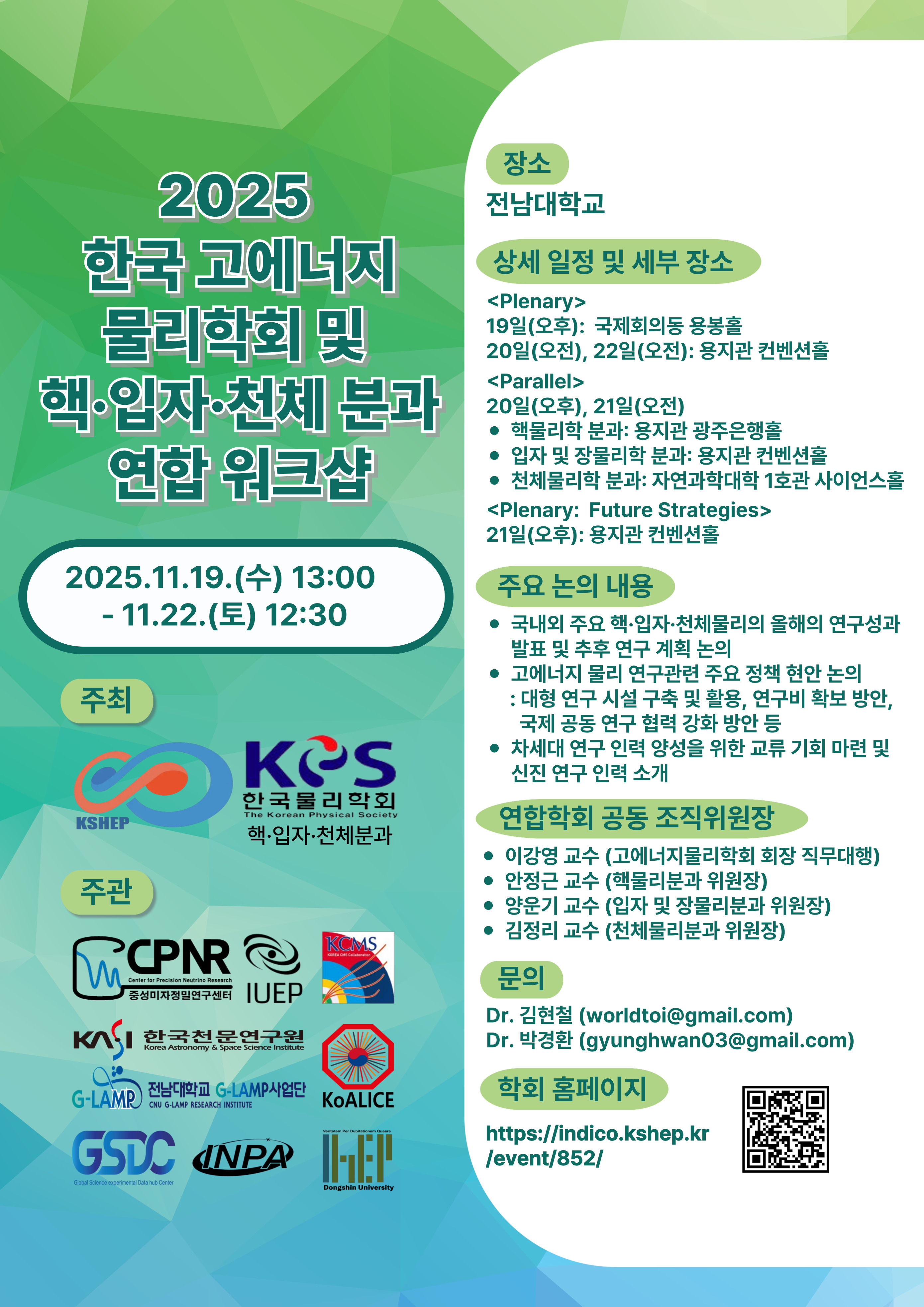 2025년 한국고에너지물리학회 및 핵-입자-천체분과 연합 워크샵